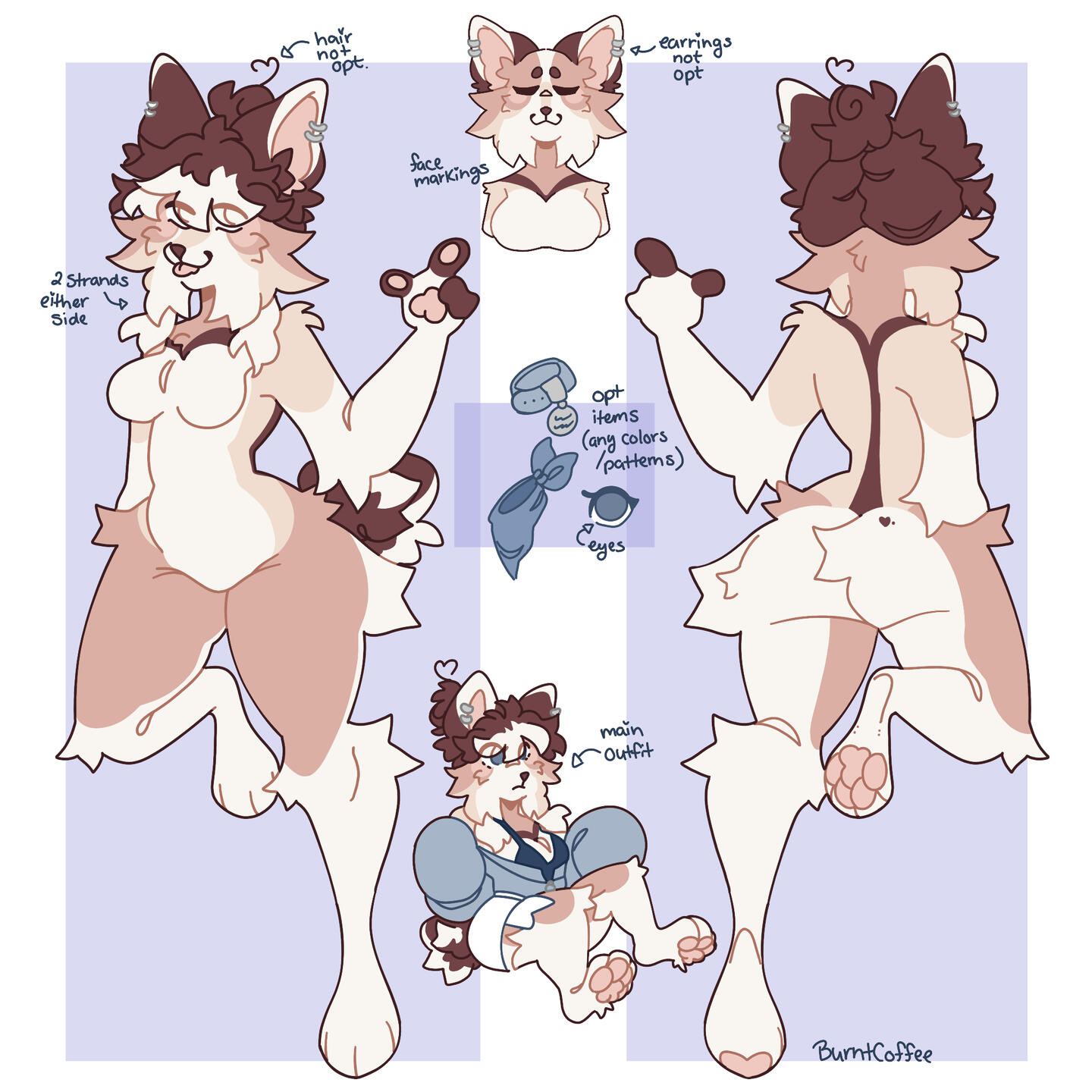 Includes Front and Back + 3 itemsTo create a bigger/more customizable ref each element you add costs the og price of what you are adding. Add 1 full= +$40. Items will cost $5 for +3 items (unless one or more is complicated /Ex,: Plushies/ then it is $10)